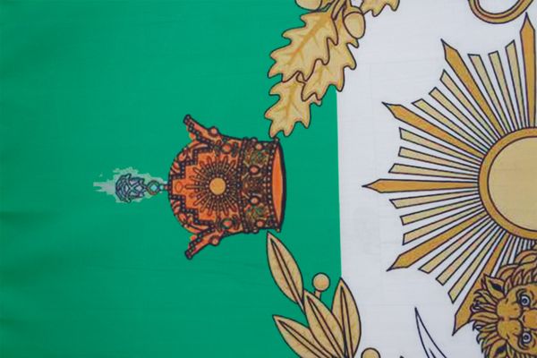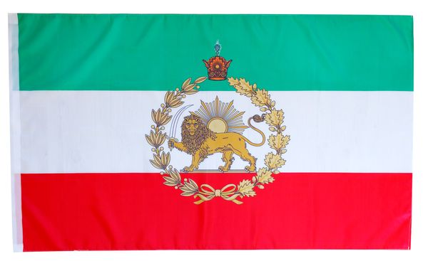 Die Iran Flagge mit Löwe im Format 90 × 150 cm ist eine originalgetreue Darstellung der historischen Persien-Fahne mit Löwe