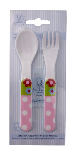 Das Sterntaler Löffel- und Gabel-Set – Bobby ist perfekt für kleine Kinderhände und begleitet die ersten Essversuche mit Freude und Sicherheit.