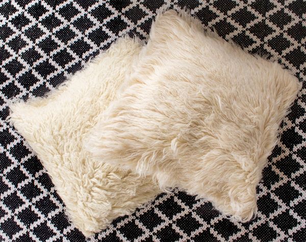 - Artikel : Handgewebter Flokati Kissen mit Füllung