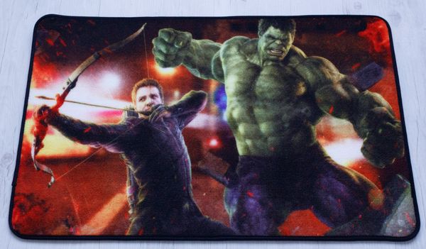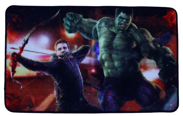 Der Marvel Kinderteppich in der Größe 70 x 50 cm begeistert mit den beliebten Avengers-Helden Hulk und Hawkeye.